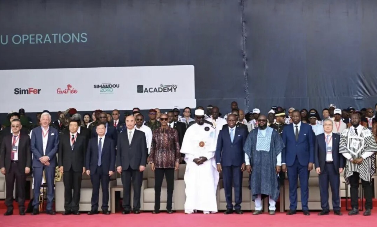 近日,几内亚西芒杜铁矿投产仪式在马瑞巴亚港举行。几内亚总统马马迪·敦布亚,习近平主席特别代表、国务院副总理刘国中,卢旺达总统卡加梅,加蓬总统恩圭马出席投产仪式。