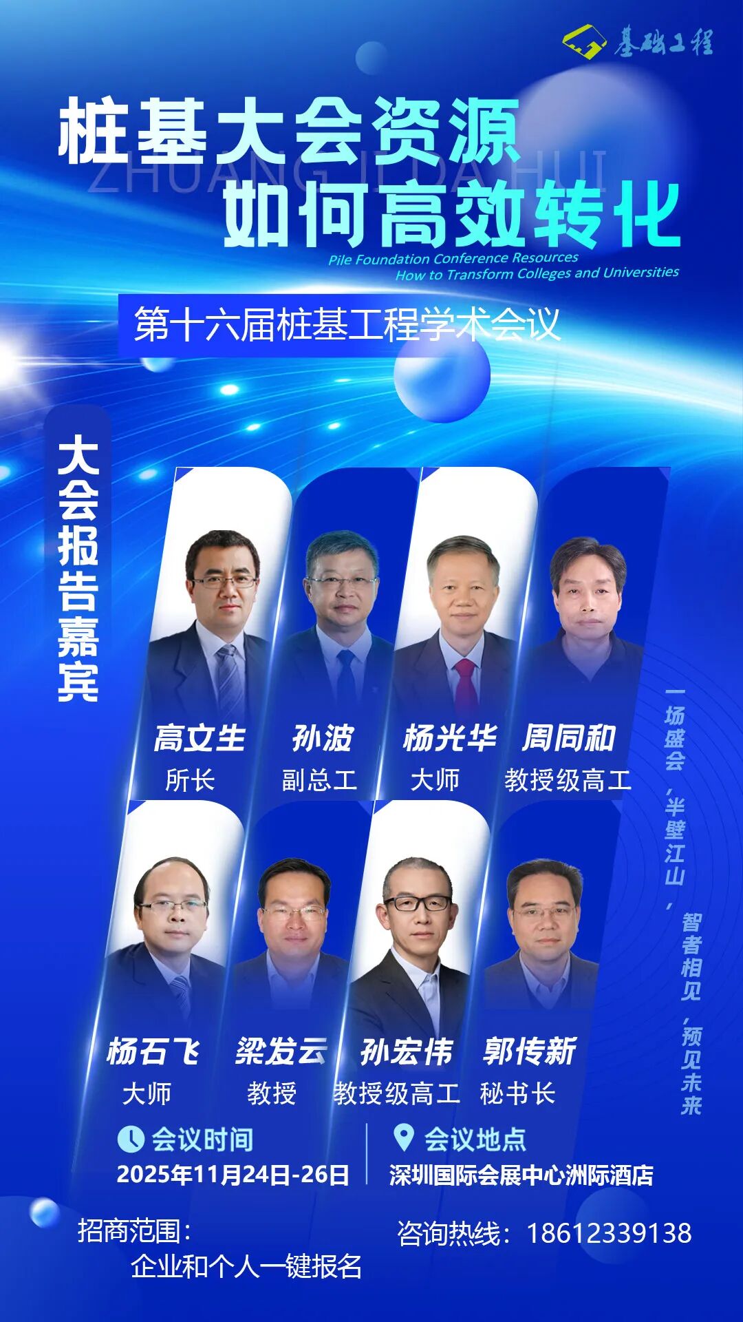 当顶级学术会议遇上王牌行业讲堂,会碰撞出怎样的行业风暴? 深耕桩基领域多余年,你是否有压箱底的技术干货想震撼全场?操盘过标杆项目,你是否渴望在行业盛典上分享实战秘籍? 带领团队突破技术瓶颈,你是否想链接更多顶尖人脉资源? 现在,机会来了!基础工程网“老朱讲堂” 将在下周二晚上移步至深圳桩基大会,嘉宾报名通道正式炸场开启!这里不设“单人上限”,多名嘉宾可组团登台,让你的专业价值在行业最高舞台上放大千万倍! 双平台联动,行业大咖都在盯 “老朱讲堂”作为基础工程网王牌栏目,单场直播曾创下7000+行业人在线的热度纪录,精准触达桩基工程师、企业技术负责人、科研学者等核心人群。而第十六届桩基学术会议更是行业年度盛典,汇聚全国桩基领域的权威专家、头部企业决策者与资深从业者。此次讲堂直接“搬入”学术会议现场,你的分享不仅能通过直播覆盖全网受众,更能直面线下数百位行业精英——这是技术输出的黄金窗口,更是个人IP与企业品牌的超级曝光场! 无论你是单打独斗的技术大牛,还是组团出征的专家团队,只要符合以下方向,都能抢占席位: 专业领域匹配:专注于桩基工程、建筑施工、项目管理、技术创新、新材料应用、绿色建筑、智能建造等领域的资深人士等核心方向; 实战经验过硬:拥有10年以上行业积淀,现任/曾任企业技术负责人、总工程师、项目总工程师、项目经理、技术部门负责人、资深一线专家、创新工作室负责人等职务; 内容价值突出:拥有原创性的技术成果、成功的项目管理案例、对行业趋势的深刻见解或具备高度实践指导价值的内容 参与形式灵活:支持单人报名分享、2-3人组团主题宣讲(如“技术+案例”组合),团队分享可整合多维度视角,内容更具深度。 超量级曝光:全方位品牌曝光 1、栏目宣传海报、推文将重点展示嘉宾的头衔、公司及分享主题; 2、直播全程及精彩片段将在合作媒体平台矩阵进行长期展示和传播; 深化内容:深度内容塑造 1、为您定制一篇深度专访文章在合作媒体平台发布 打造您的个人专业IP; 2、直播内容将制作成高质量视频及图文干货 便于您用于企业宣传、团队培训等; 权威认证加持:提升行业公信力 1、授予由栏目组颁发的 “老朱讲堂特约讲师” 荣誉聘书; 2、优先纳入行业专家资源库,获得后续高端峰会、项目咨询等活动的优先邀请机会。 报名方式:添加小客服,填写嘉宾信息(团队报名需备注所有成员信息及分工) 报名专线联系人: 李 冉,13671141780 李 娜,15210863916 王思祺,15701183916