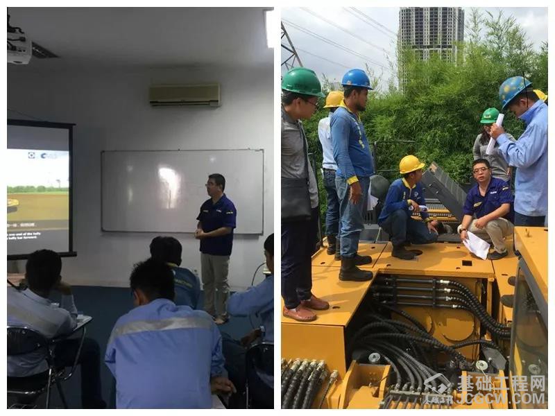 随着建设进度的加快,印尼面临着施工专业人才严重不足,特别是在桩基础施工方面紧缺旋挖钻机操作人员。徐工基础紧紧围绕国际市场“四化”建设—服务备件当地化,安排服务技术支持人员到印尼,为当地代理商公司的员工、机手进行旋挖钻机操作及服务技能培训,从液压油路到电气控制,从机械结构到工作原理,从施工操作到保养检修,进行针对性地辅导,直到每个学员都理解透彻。现场服务培训推进了公司海外服务“当地化”进程,提高了海外服务水平,为客户创造了更大价值。