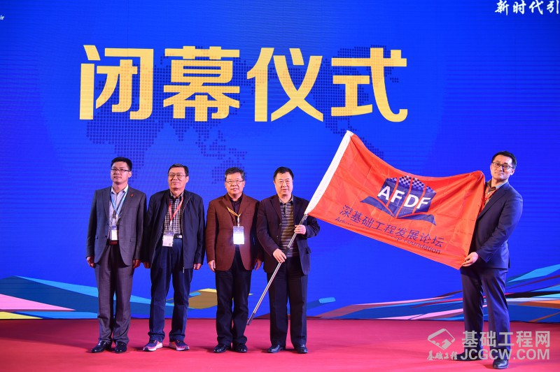 会议现场确定了第十届深基础工程发展论坛举办地为山东省济南市,并以本届协办方代表辛鹏总经理将会旗交接给下届协办方山东大学等领导为本届会议划上圆满的句号。