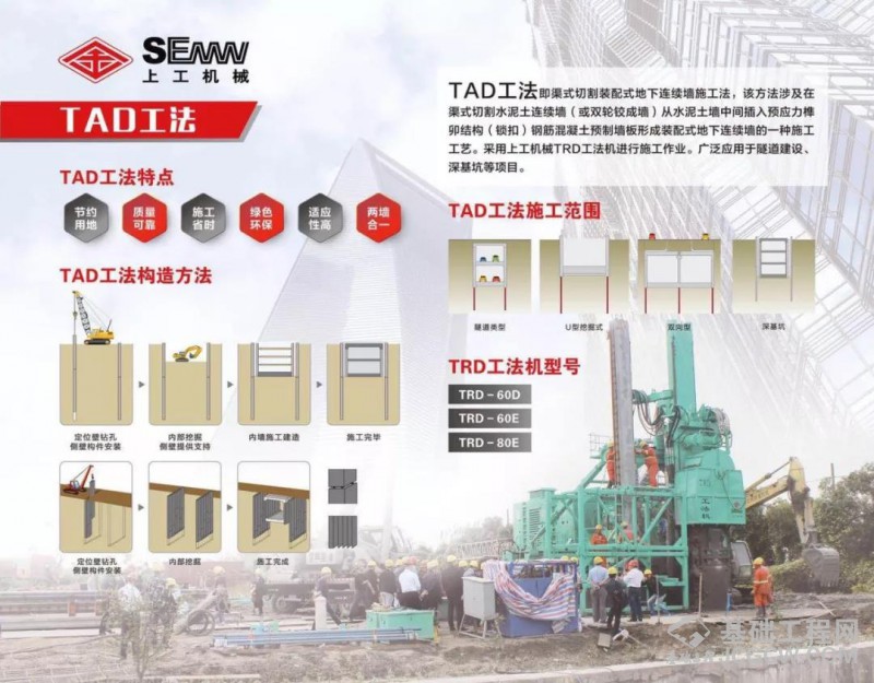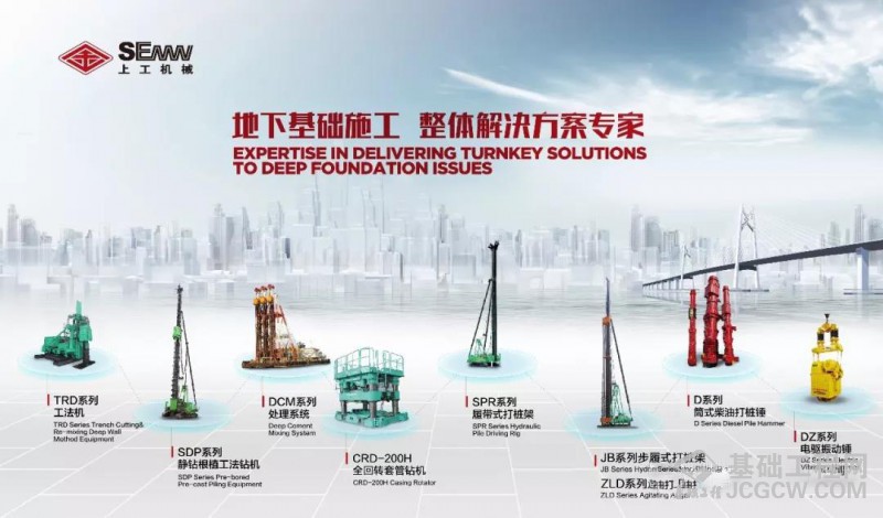 上海工程机械厂有限公司现坐落于上海市宝山区杨南路258号,成立于1921年。公司产品注册商标为“金菱”牌、SEMW,在市场上享有良好的声誉。 公司主要从事TRD工法机、静钻根植工法钻机、全回转套管钻机、DCM处理系统、多轴式连续墙钻机、全液压履带式、步履式打桩架、筒式柴油锤、电驱振动锤、液压打桩锤等地下基础施工机械产品的设计、制造和销售。可为高速公路、高层建筑、桥梁、地铁、机场、码头、电站等特大型工程的基础施工提供机械设备和整体解决方案。