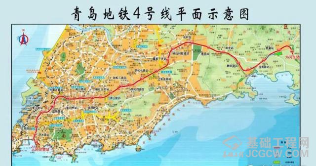 4号线从人民会堂站到大河东站,全长约30公里,经过市南区、市北区、崂山区,与已开通的3号线、2号线、11号线换乘,全线预计2021年12月31日完工。目前,4号线的人民会堂站-沙子口站段累计开工率93%,东延段的沙子口站-大河东站段累计开工率10%,25座车站中已有19座车站进入主体开挖。