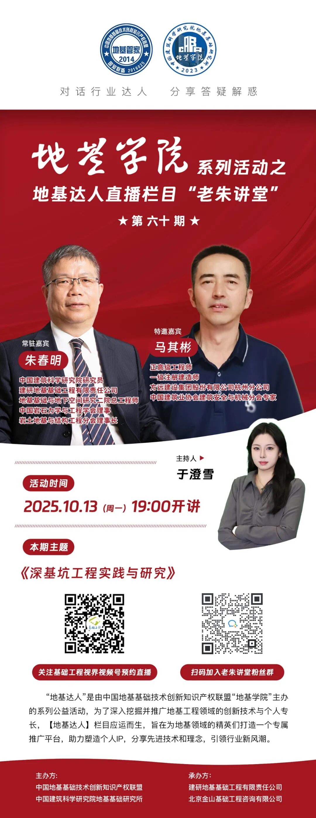 地基学院 | 地基达人-老朱讲堂(第60期):马其彬 -- 深基坑工程实践与研究