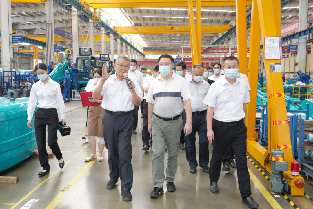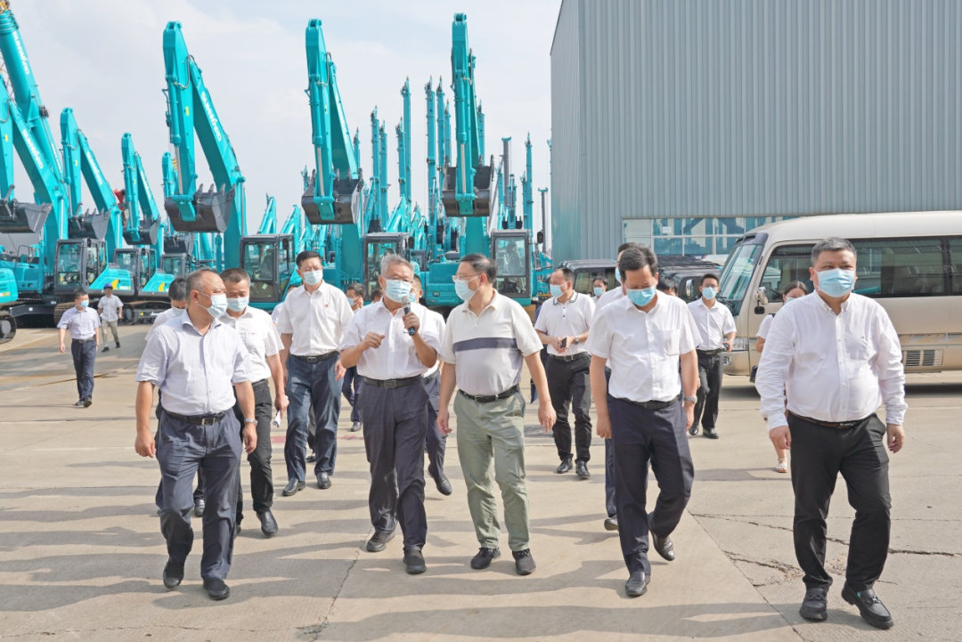 △张剑飞一行调研山河智能。 沿着习近平总书记考察山河智能的路线,张剑飞一行来到挖掘机装配车间,参观挖掘机生产装配流程,了解山河智能生产经营、关键零部件国产化、产品出口等情况。山河智能董事长、首席专家何清华介绍,成立于1999年的山河智能,是国内最早研发、生产挖掘机的企业之一,目前挖掘机产品覆盖微、小、中、大型全系列,在欧洲市场,山河智能挖掘机的保有量居国产品牌第一位。中央电视台《我爱发明》《创新进行时》等栏目对山河智能挖掘机进行了专题报道,观众和客户好评如潮。何清华和张剑飞还一起探讨了山河智能挖掘机在节能减排、能量回收等技术方面的问题。 随后,张剑飞一行前往山河工业城三期项目建设现场,了解项目建设进展及发展规划。作为省市十大产业项目之一,山河工业城(三期)项目得到了省市区县的大力支持,项目达产后将成为湖南高端装备制造产业的又一张靓丽名片,为湖南先进制造及经济社会发展注入新的强劲动力。 △张剑飞一行前往山河工业城三期项目建设现场,了解项目建设进展及发展规划。 作为全球工程机械制造商50强,山河智能牢记总书记嘱托,聚焦“一点三线”战略,确立“两年两百亿,五年再翻番,挺进二十强”的战略目标,坚持创新驱动发展,把握新基建战略发展机遇,做好内外双循环,坚定不移地把企业做强做优做大。根据半年度报告,山河智能2021年上半年实现营收68.87亿元,同比增长57.24%,净利润5.32亿元,同比增长33.86%。 省市区领导唐恒忠、潘杰波、陈刚、张庆红、赖坤明,公司领导何清华、夏志宏、朱建新、吴文伟等参加调研。