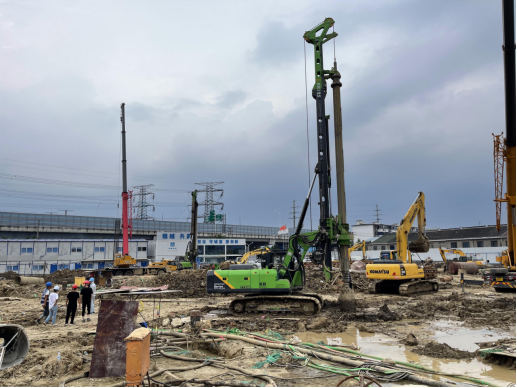 无锡市境内以冲湖积和湖沼积平原为主,现场地质条件主要为回填地层、黏土、粉质黏土、粉质黏土夹粉土、粉砂、粉质黏土。现场紧挨着太湖,地下古河道网络纵横,地下水位高,施工难度大,尤其是粉砂地层属于易塌孔地层,需要泥浆护壁。现场钻孔桩径600mm和900mm两种桩型,孔深28m~32m,泰恒机械配备5年以上的熟练操作人员,要严格控制钻孔速度和钻杆提杆速度,有效的防止塌孔,平均成孔时间控制在1小时左右,增加了施工效率,为客户增加施工量,缩短施工周期,创造更大的价值。