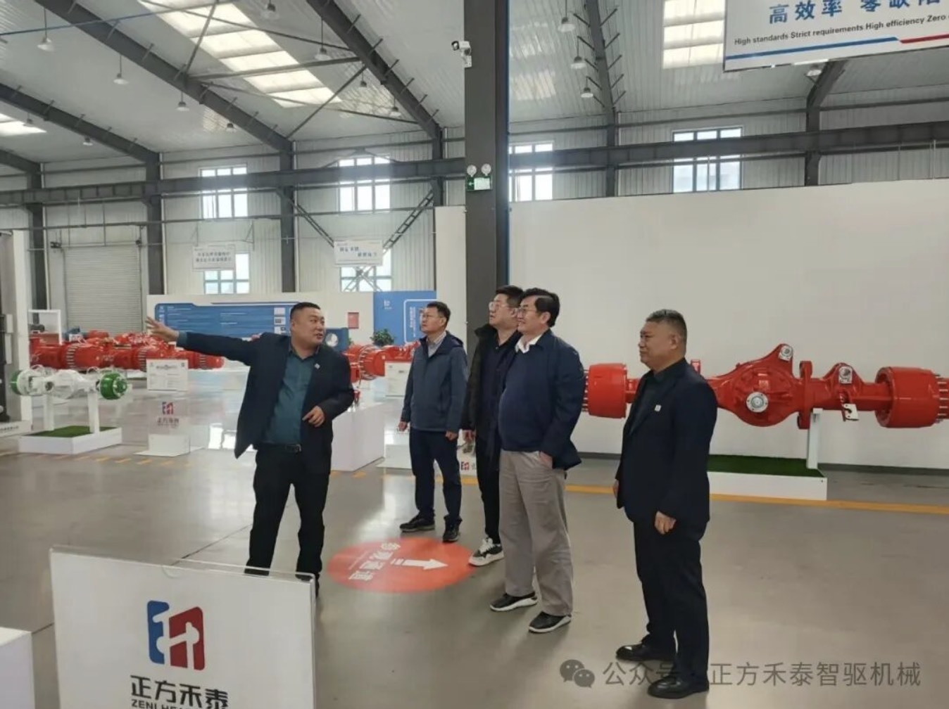 总经理刘喜康向蔡蔚院士讲解了展厅展放的210吨电传动、全转向独立悬挂电驱桥、AI算法全生命周期健康管理电驱桥系统总成、军用运输车智慧车桥等新产品,蔡蔚院士与哈尔滨理工大学教授对正方禾泰的技术创新、企业成长、研发周期、质量管控等一系列战略规划创新表示肯定。