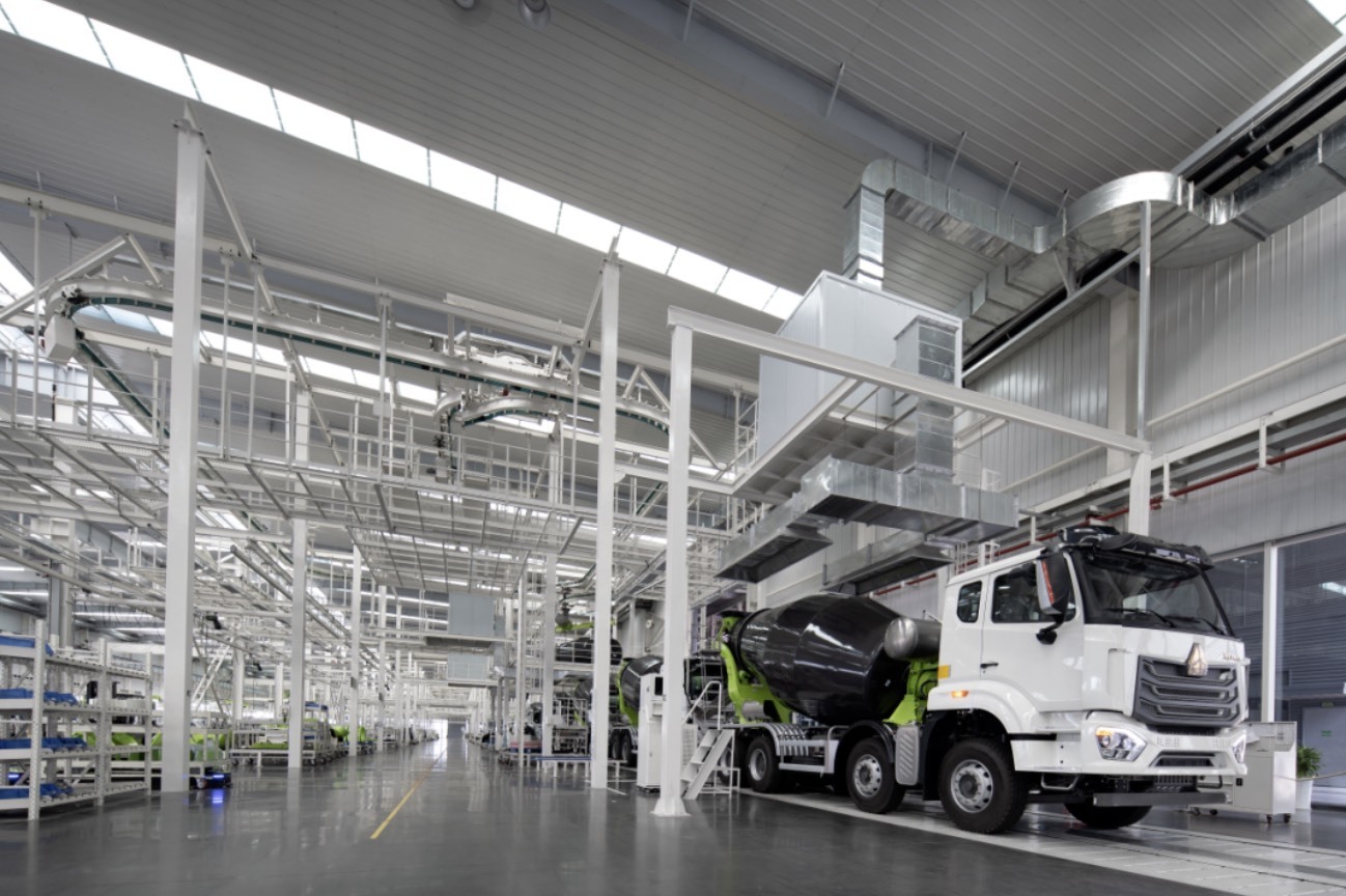 中联重科搅拌车智能制造产业园同样以新工艺、新技术赋能绿色制造。如,为减少有害物质的使用,使用水性漆代替油性漆,使用无铅焊丝代替有铅焊丝;在联合车间内设置自动喷粉生产线,采用静电喷粉的方式,可自动回收粉末涂料,回收效率为99%,等等。