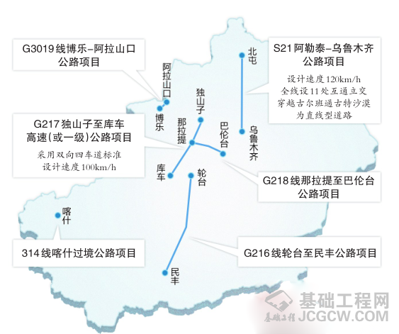 据了解,其余5个项目分别是G218线那拉提至巴伦台公路项目、S21阿勒泰-乌鲁木齐高速公路项目、G3019线博乐-阿拉山口公路项目、314线喀什过境公路项目、G216线轮台至民丰公路项目。