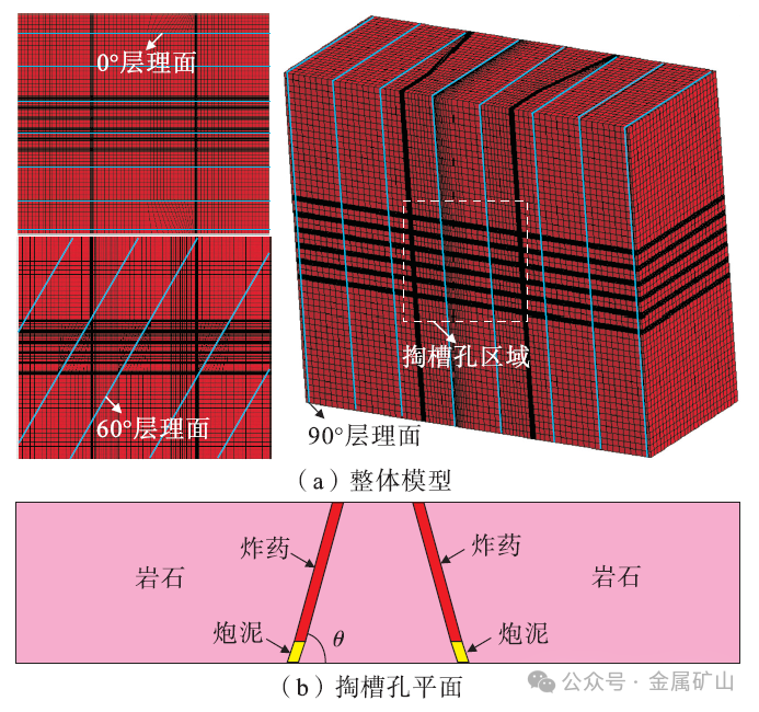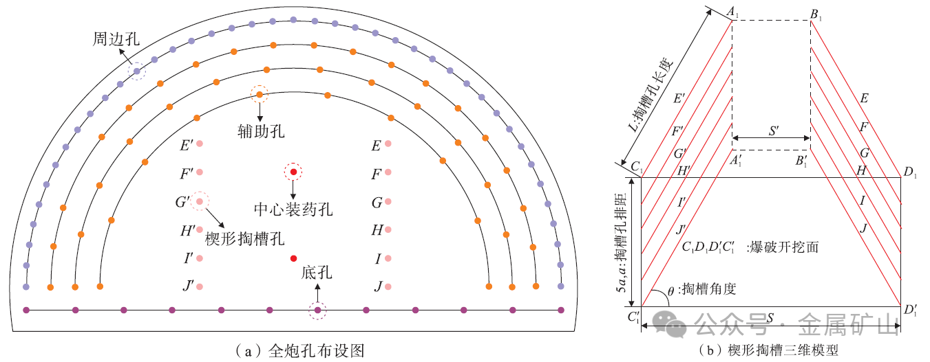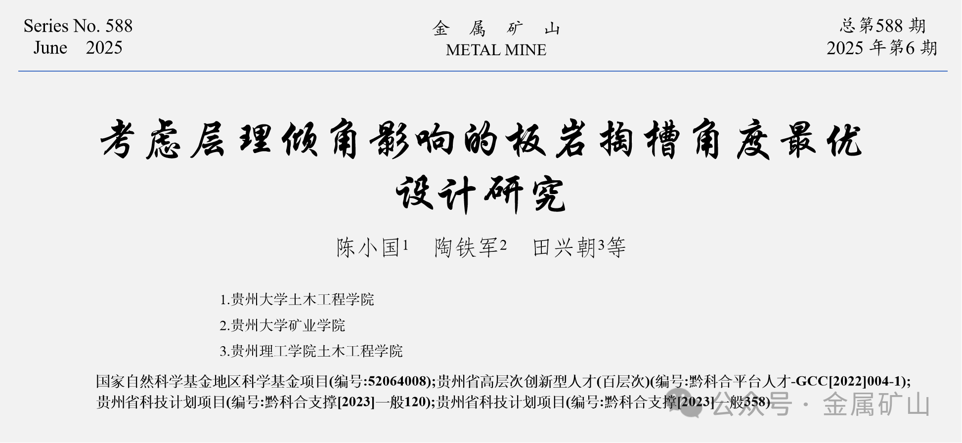 随着新一轮“西部大开发”国家战略的深入实施,我国现代交通基础设施建设重点正逐步向地质条件复杂的西南山区延伸,板岩地层中的隧道工程数量日益增多。掏槽爆破作为板岩隧道及井巷钻爆法施工的关键环节,其参数设计直接影响爆破效果与施工质量。由于板岩层理倾角的变化会显著影响爆炸应力波的传播路径与裂纹扩展方向,掏槽角度的设计需综合考虑层理倾角的影响。贵州大学陶铁军教授团队针对巴岳山板岩隧道工程中存在的掏槽成腔效果不理想、炮孔利用率低等问题,开展了板岩隧道爆破损伤机理与优化设计研究。团队以现场钻芯取样的板岩为研究对象,通过静动力学试验确定其力学参数,并据此标定了HJC本构模型参数;借助ANSYS/LS-DYNA软件对掏槽爆破过程进行数值模拟,定量分析有效应力的传播规律与围岩损伤演化特征;最终揭示了不同层理倾角条件下的最优掏槽角度,并通过现场试验验证了该方案的科学性,为隧道安全、高效施工提供了关键技术支持。基于巴岳山隧道现场岩体情况,经钻芯取样并严格按照国际岩石力学学会的标准制备3种不同层理倾角岩样后进行静动力学试验,获取力学参数。通过单轴与三轴压缩试样获得板岩的单轴抗压强度、弹性模量、泊松比以及HJC本构模型强度参数B、N值;通过巴西劈裂试验获得板岩抗拉强度;动力学试验在Split Hopkinson Pressure Bar (SHPB)系统上开展,为计算HJC参数提供数据。本研究基于巴岳山隧道现场炮孔布设情况构建分析模型,发现掏槽角度是决定楔形掏槽爆破效果的关键参数,对爆破效果具有显著影响。较小的掏槽角度有助于引导爆破能量,提高能量传递效率,但容易造成岩石过度破碎;而较大的掏槽角度虽有利于实现岩石的大面积破碎、提升炮孔利用率,但也伴随掏槽失败的风险。结合板岩具体数据进行分析表明:当掏槽角度小于60°时,槽腔中心合力过大,爆破能量难以有效释放,易导致岩石过度破碎且抛掷距离过远;随着掏槽角度由60°增大至70°,合力减小31.63%;进一步增至80°时,合力减小49.23%。然而,若掏槽角度达到80°,爆破能量过于分散,无法满足合力大于掏槽在最小抵抗线上形成空腔所需的总阻力,从而导致掏槽失败。综上,现场掏槽角度的合理选取范围应为60°~80°。但目前针对不同层理倾角条件下的掏槽孔角度精准布设方法,仍有待进一步研究确定。依托工程现场,采用ANSYS/LS-DYNA软件,构建了层理倾角分别为0°、60°、90°以及掏槽角度分别为60°、70°、80°的9种工况下的板岩隧道楔形掏槽爆破数值模型。较低的有效应力容易导致炮孔围岩破碎不充分,从而形成较大岩石块体,不利于抛掷;而有效应力达到最大时,更多爆破能量被用于破坏岩石,有助于实现炮孔炸药利用率的最大化。掏槽爆破后,围岩损伤区域的大小反映了岩石的破碎范围,损伤区域越大,表明炸药能量利用越充分。连续分布的损伤区域能够有效避免爆破后出现“鼓肚”现象,有利于提高炮孔循环进尺,从而改善掏槽成腔效果。因此,有必要对代表性单元进行有效应力与围岩损伤分析,以确定最优掏槽角度。当层理倾角为0°时,应力波传播方向与层理面近乎平行,导致沿层理方向的岩体损伤较为显著,表明该方向上的破岩能量最为集中。在此情况下,80°掏槽角度所形成的损伤区域最大,且损伤沿炮孔长度方向分布连续,炮孔底部的损伤区域也较为平整。当层理倾角为60°时,应力波传播方向与层理面呈斜交,使得沿层理方向的损伤扩展更为突出,其损伤程度也明显高于其他区域。此时,70°掏槽角度对应的损伤区域最大,且分布最为连续。当层理倾角为90°时,应力波传播方向与层理面近似垂直,能量耗散最为显著,岩体损伤程度较高。在此条件下,70°与80°掏槽角度所产生的损伤区域相较于60°时更不平整,并出现较多“鼓肚”现象。基于楔形掏槽破岩基础理论、仿真结果以及现场试验,在层理厚度、间距以及炮孔装药量等参数均一致的情况下,当板岩隧道层理倾角分别为0°、60°、90°时,最优掏槽角度分别设计为80°、70°、60°,可实现最大有效峰值应力及爆破损伤区域,从而达到最佳的掏槽爆破效果。贵州大学矿业学院三级教授,博士研究生导师,国务院特殊津贴专家、贵州省“省管专家”,获贵州省高层次人才“百层次”、贵州省优秀青年科技人才、贵州省青年科技奖、江西省首批“双千”人才,现任贵州省隧道与地下空间安全建造与智慧运维创新人才团队负责人、中国爆破行业协会常务理事和专家委员会委员、贵州省力学学会监事会副主席。主要从事爆破工程、安全工程、岩土工程的教学与科研等方面的研究,主持国家自然科学基金等省部级课题10余项,先后发表学术论文100余篇,其中EI、SCI收录30余篇,出版专著1部,获国家知识产权局授权发明专利15项(第一完成人11项)、实用新型专利18项,获贵州省科学技术进步一等奖1项(第7)、二等奖3项(第1、1、3)、三等奖1项(第2),中国爆破行业协会科技进步一等奖3项(第1、2、7)、二等奖3(第1、2、5)项,获中国岩石力学与工程学会科技进步二等奖1项(第5),主持或参与起草行业标准2项、地方标准2项、省级工法2项。