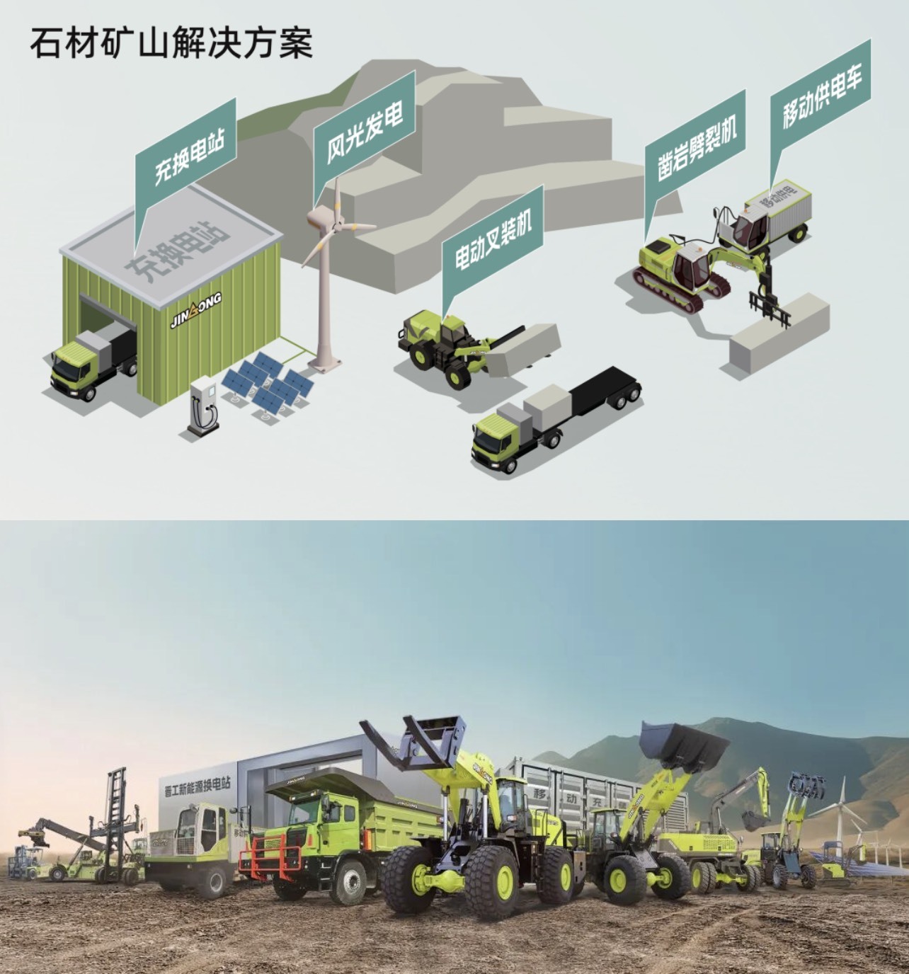 青山碧水绘长卷,绿色征途创新高。在这绿色矿山发展的浪潮中,晋工新能源始终锚定“双碳”目标,凭借深厚的科研底蕴与技术积累,为矿山客户提供“风光储充换运”一站式零碳矿山解决方案,推动全球工业场景的绿色化和智能化。